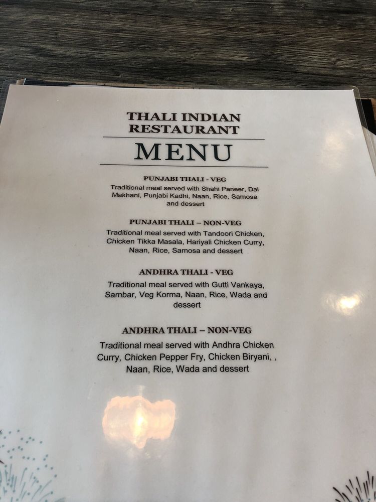 Thali Indian Restaurant Menu